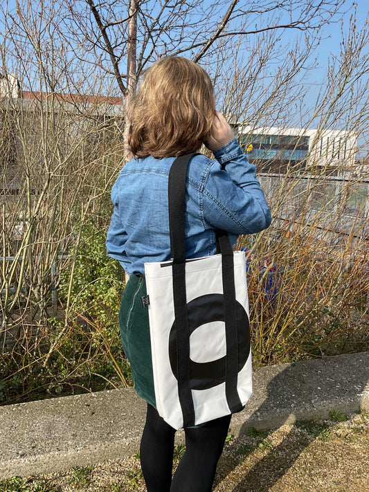 Sold outThe Upcycle Movement Tent Tote - b/w