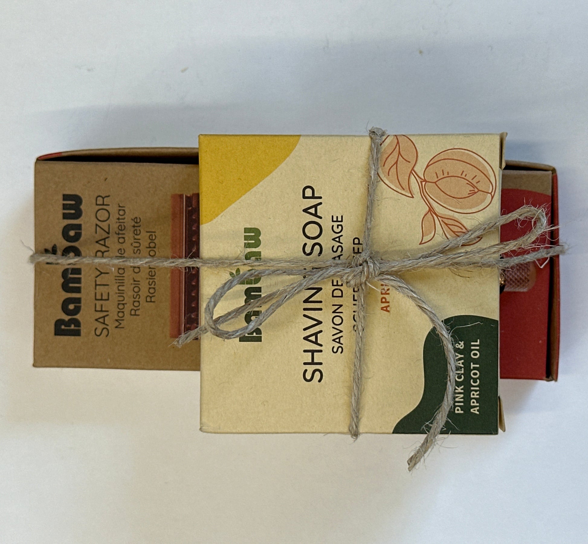 Bambaw Shaving Soap Apricot & Bambaw Safety Razor gift set