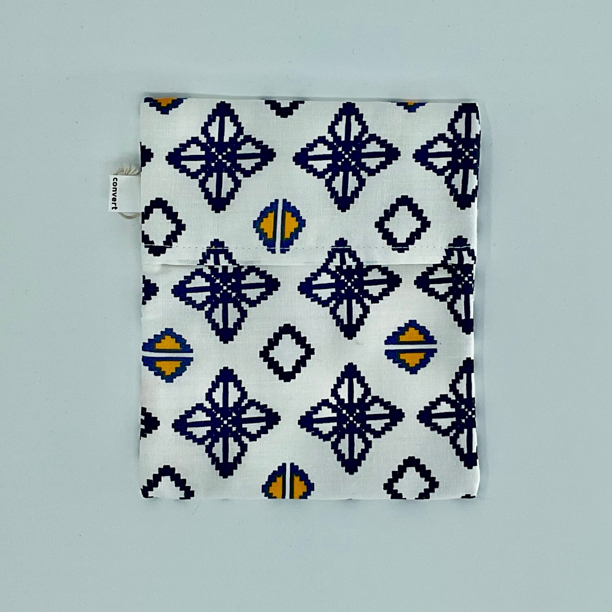 Fabric: Made from upcyclled bedding fabrics the outer is cotton polyester mix and the pouch is lined with a water resistant layer