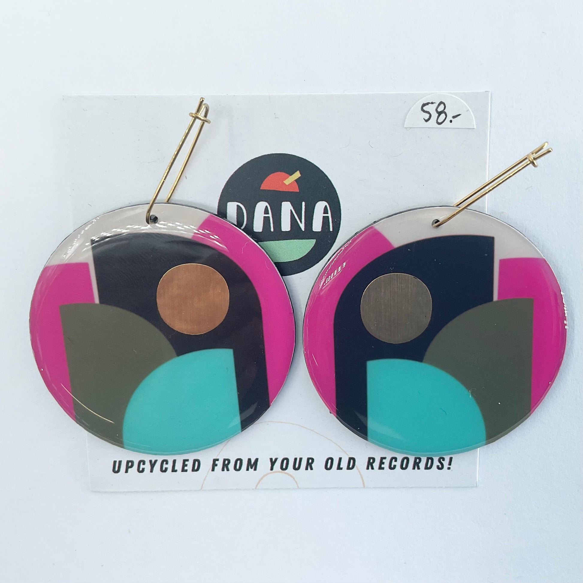 Unique contemporary upcycled vinyl record jewellery.