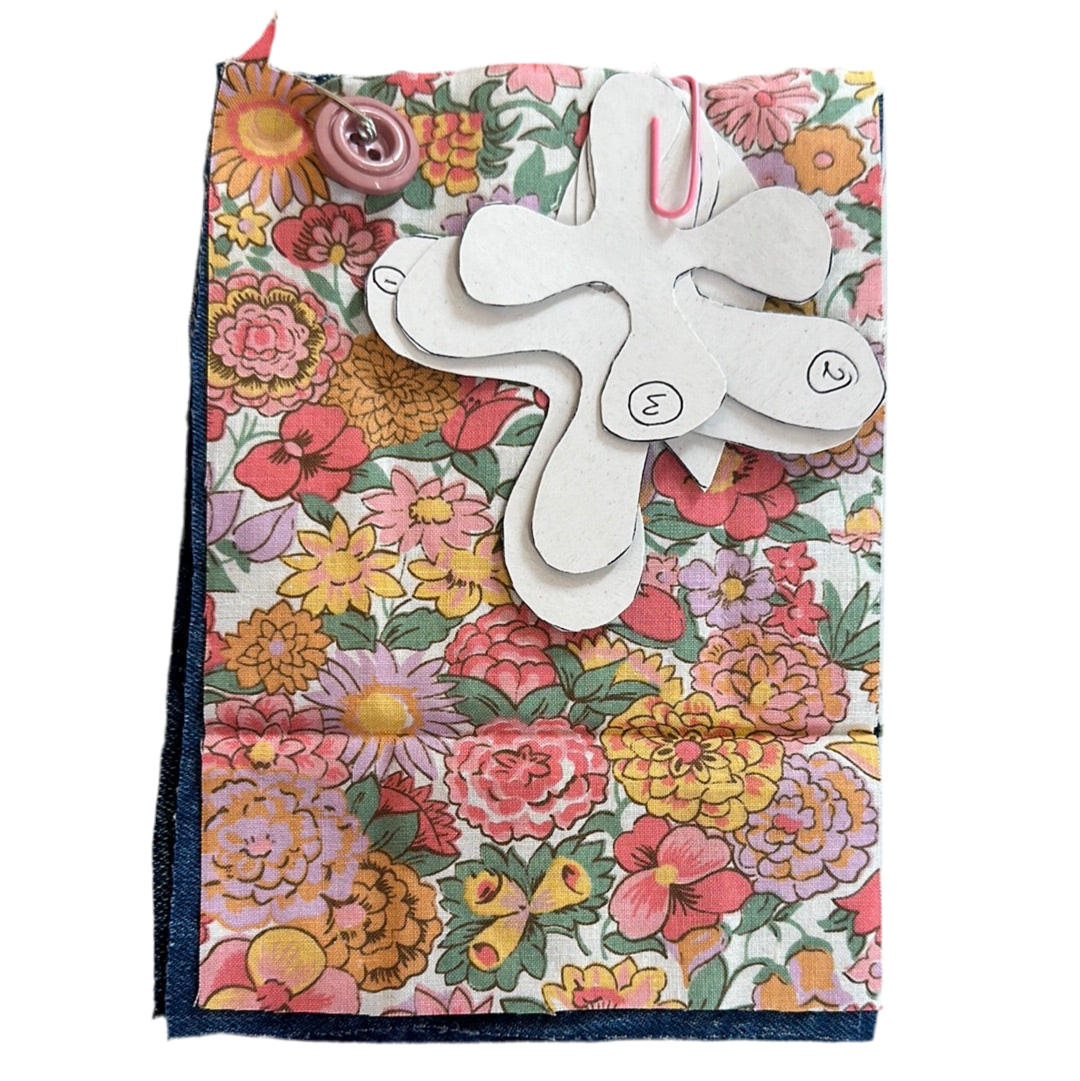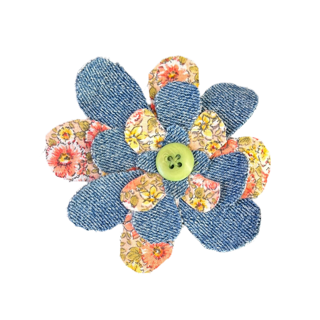make your own badge from fabric scraps. Fabric pattern might differ