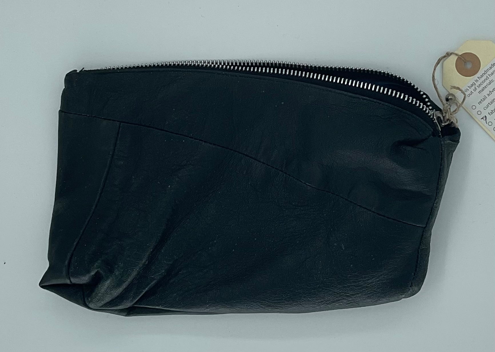 Leather pouch/purse made out of a leather jacket and upcycled fabrics.