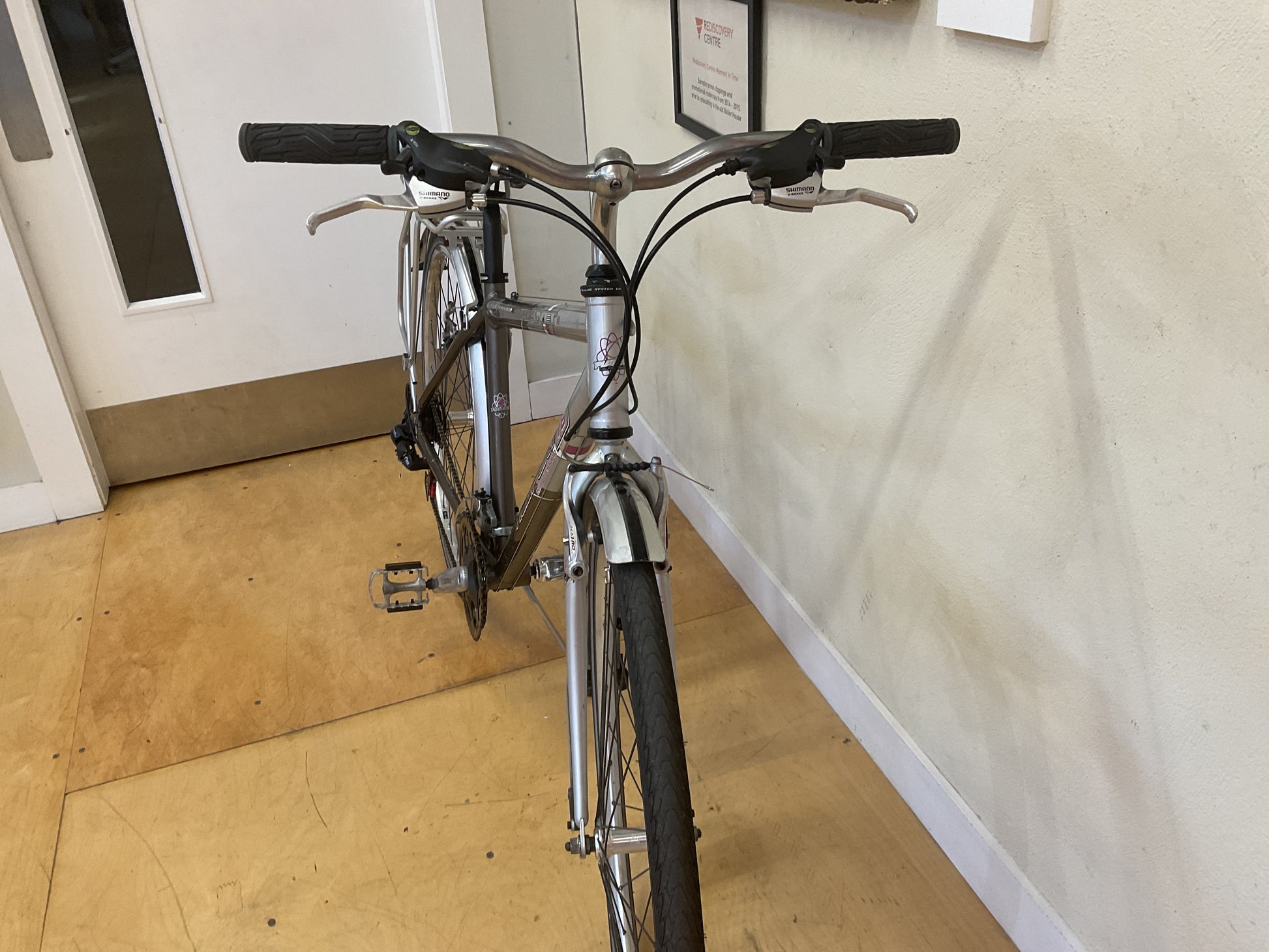 Bike Type:CommuterFrame Type:High CrossbarFrame Size:18" / 45.5cmSaddle Type:AverageShifter Brand:ShimanoFront Gears:3Back gears:7Wheel Size:28" / 700C / 622Tyre Width1.25" / 32mmFrame Material:Aluminium AlloyFork Material:Steel AlloyHeight min:5' 5" / 165cmHeight max:6' 0" / 183cmHandlebars:Riser / FlatTyre Type:StreetFront Brake:V-BrakeMechanic:JP H.Sale% of Orig.:40%Original Value ≈€420.00