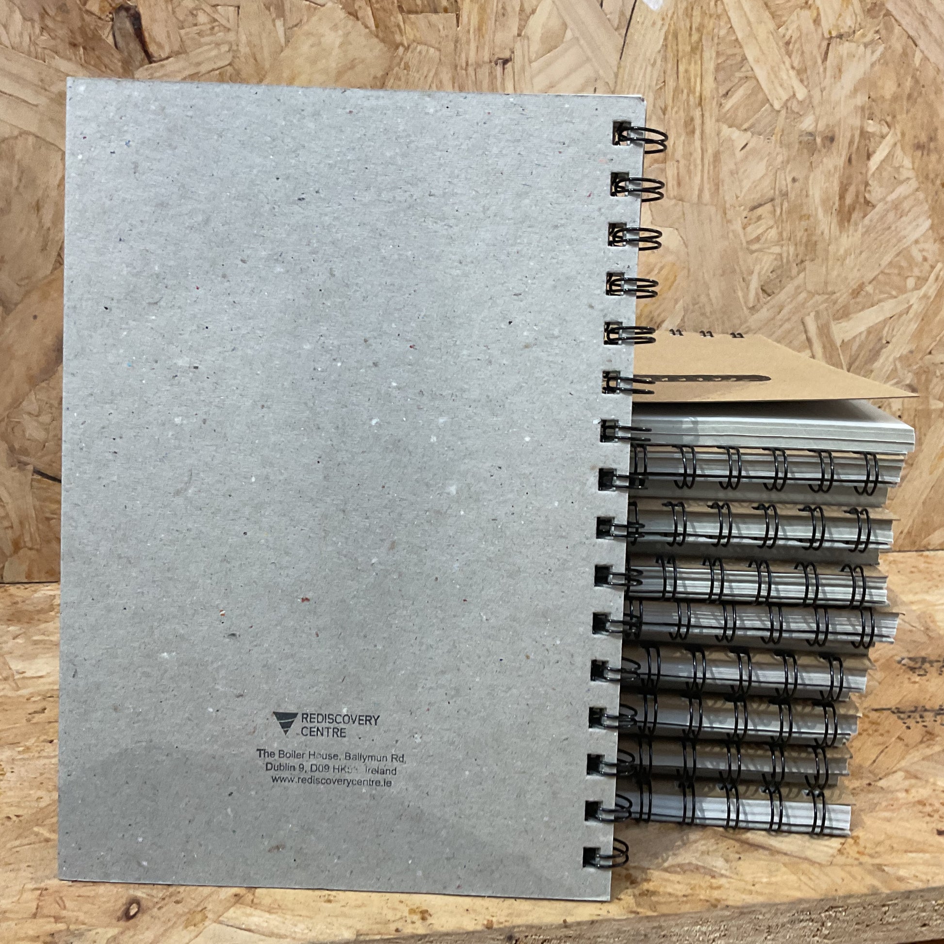 Ballymun A5 Notepads are made with 100% recycled paper. Designed and printed with linocut print by Rediscovery Centre Ecostore team.