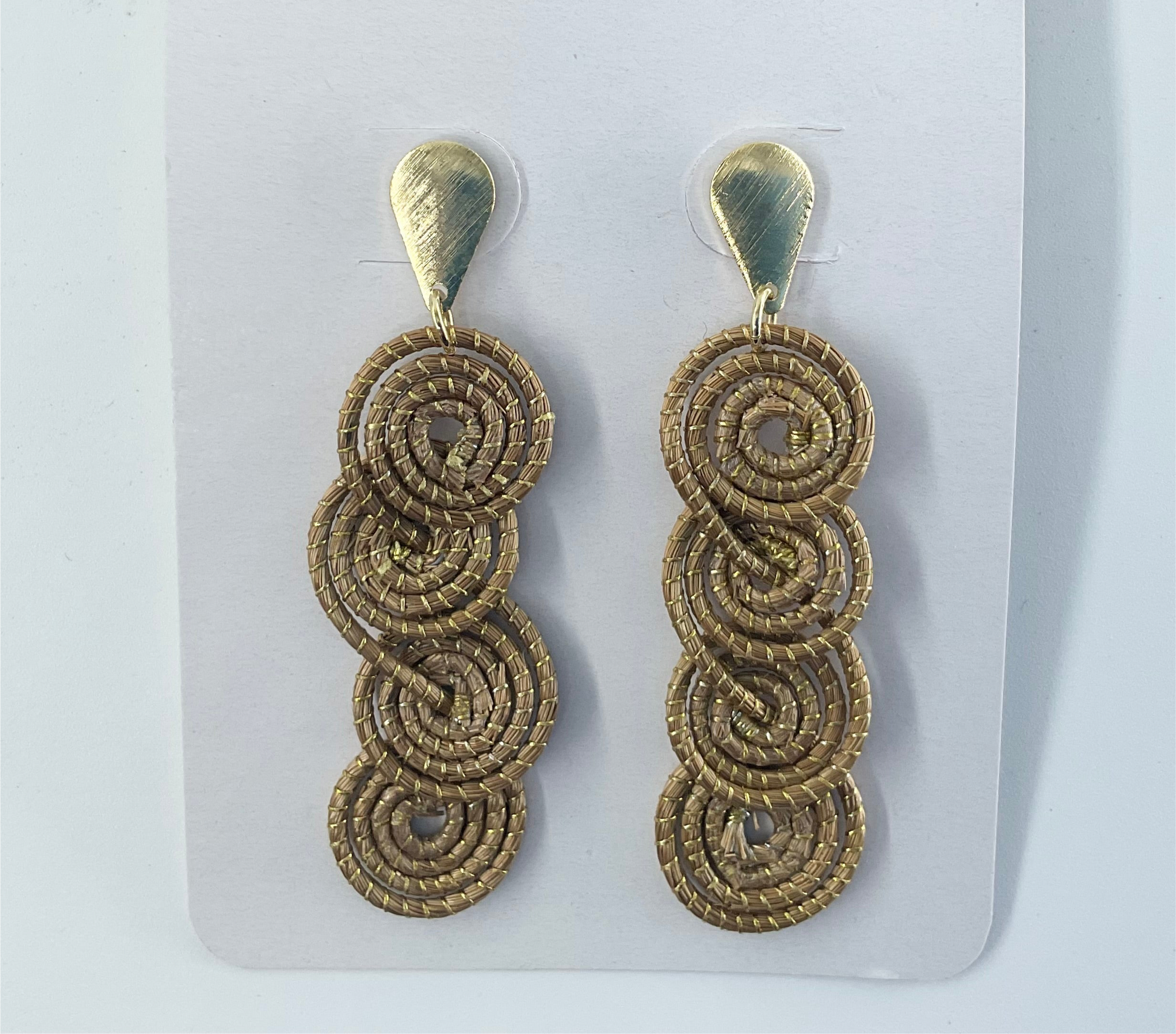 Earrings made from capim dourado gold grass which grows in the Tocantins region of Brazil.