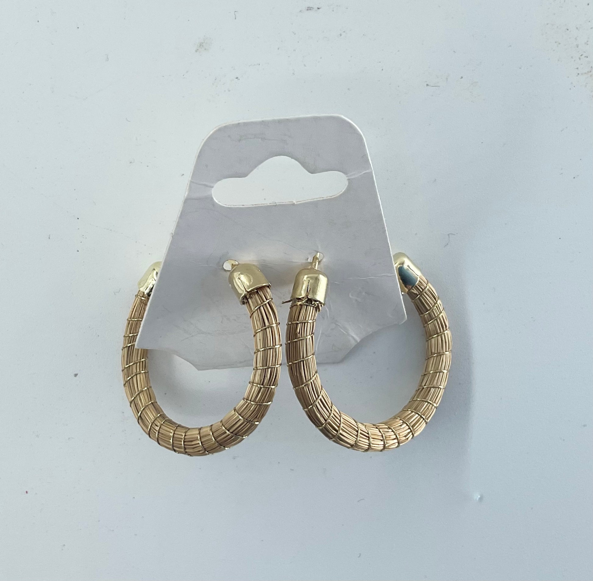 Earrings made from capim dourado gold grass which grows in the Tocantins region of Brazil.